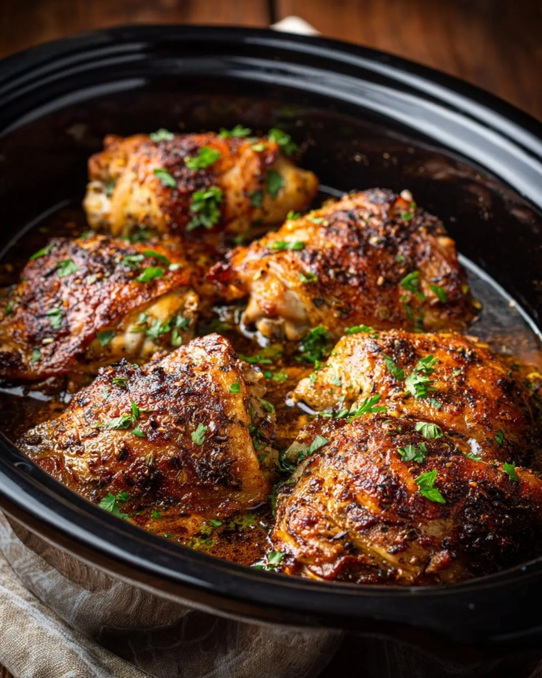 Before serving, shred the chicken thighs directly in the slow cooker using two forks, allowing them to soak up all that incredible sauce. Taste and adjust seasonings if necessary. Garnish generously with fresh chopped parsley or cilantro. Serve immediately and enjoy your effortlessly delicious meal! Pro-tip: A squeeze of fresh lemon juice at the end can brighten all the flavors beautifully.