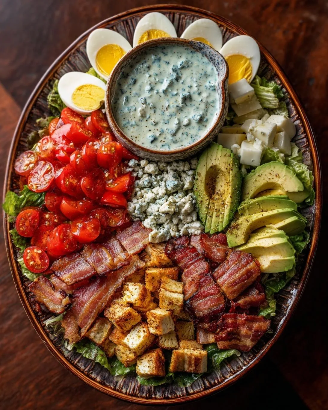 A4: Yes, in moderation. It’s rich in protein from chicken and eggs, healthy fats from avocado, and plenty of vitamins and fiber from the fresh vegetables. However, bacon and blue cheese dressing contribute to higher fat and calorie counts. Opting for leaner proteins, reduced-fat dressing ingredients, and mindful portion sizes can make it even healthier.