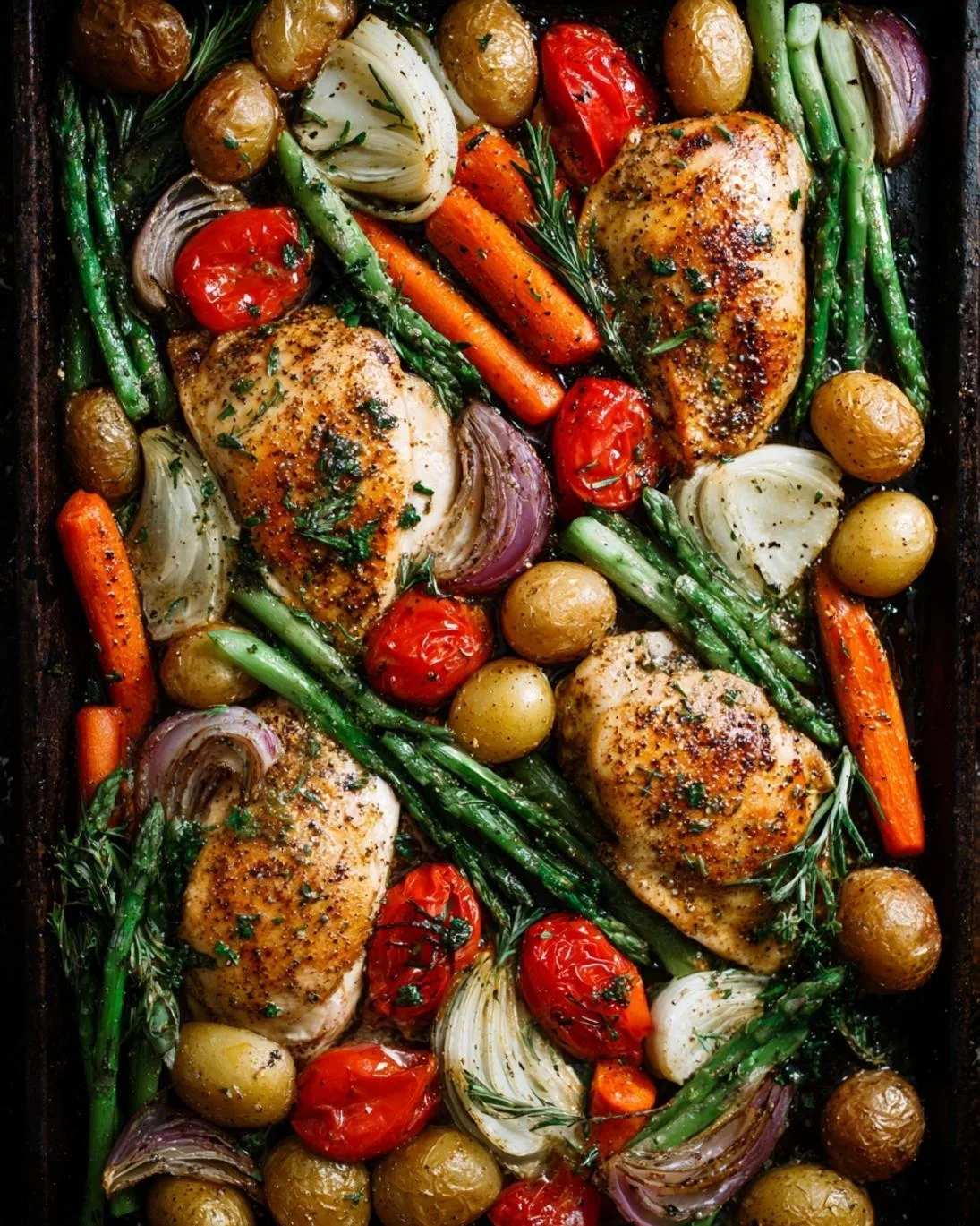 A3: If using boneless, skinless chicken breasts, cut them into pieces that are similar in size to your vegetables to ensure even cooking. Avoid overcooking by using an instant-read thermometer; remove the pan from the oven as soon as the chicken reaches an internal temperature of 165°F (74°C). Chicken thighs are naturally more forgiving and less prone to drying out.