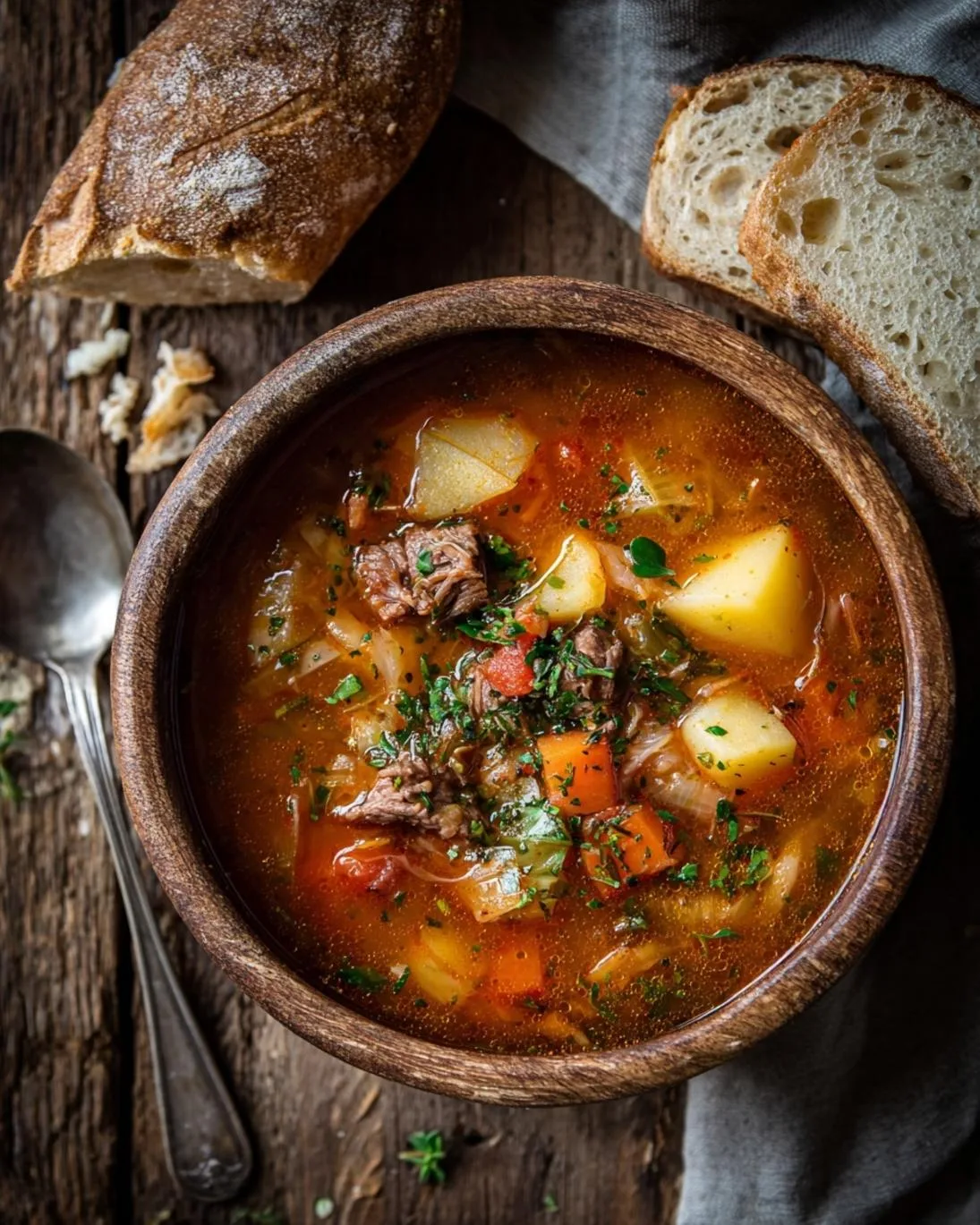Serve your Hearty Cabbage and Beef Soup piping hot! This dish is a meal in itself, but here are some ideas to elevate the experience: