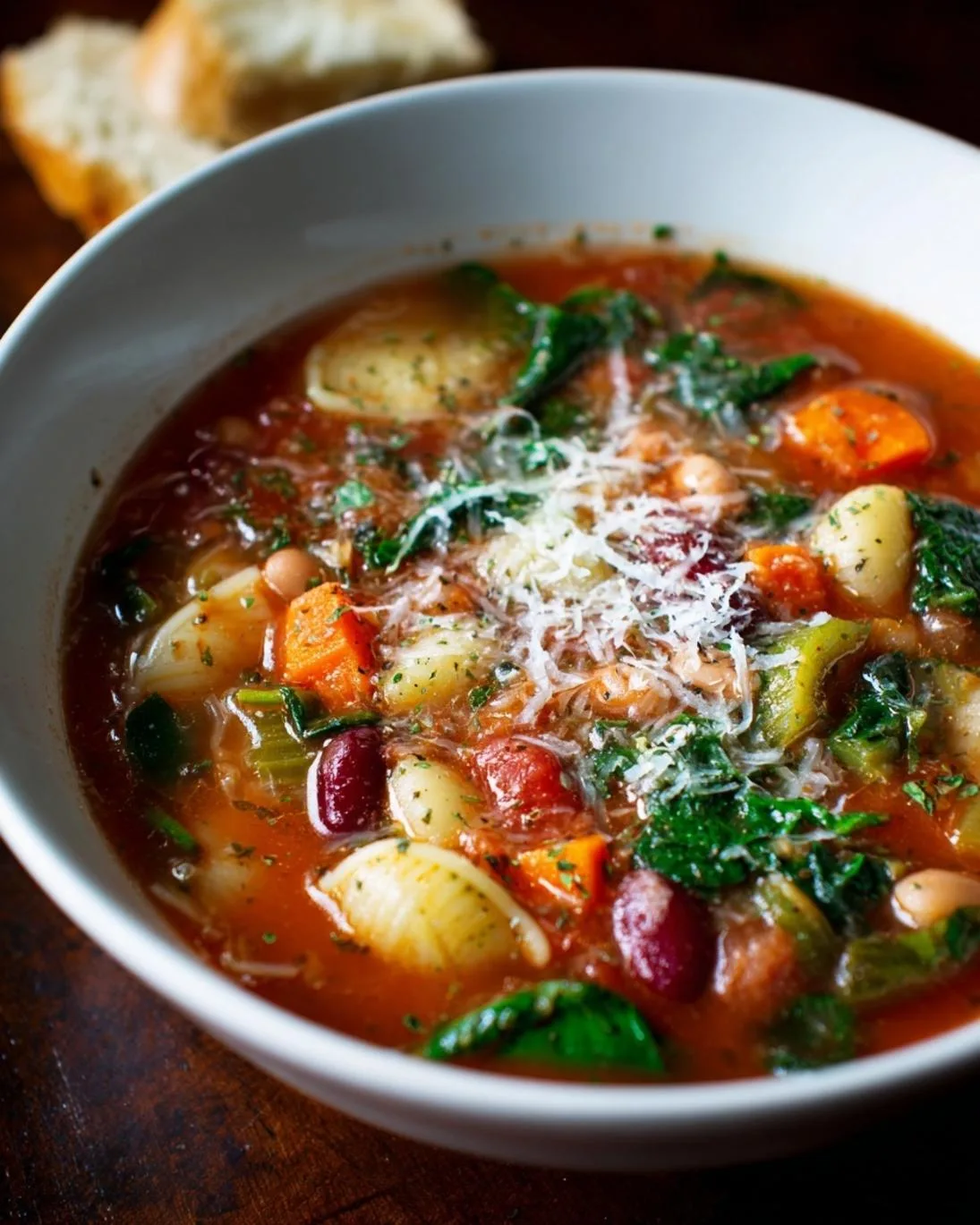 A2: Minestrone is incredibly forgiving! It’s a “clean out the fridge” type of soup. Feel free to substitute with whatever fresh vegetables you have on hand. Bell peppers, cabbage, potatoes (add with carrots), or even pumpkin/butternut squash blend beautifully into this soup.