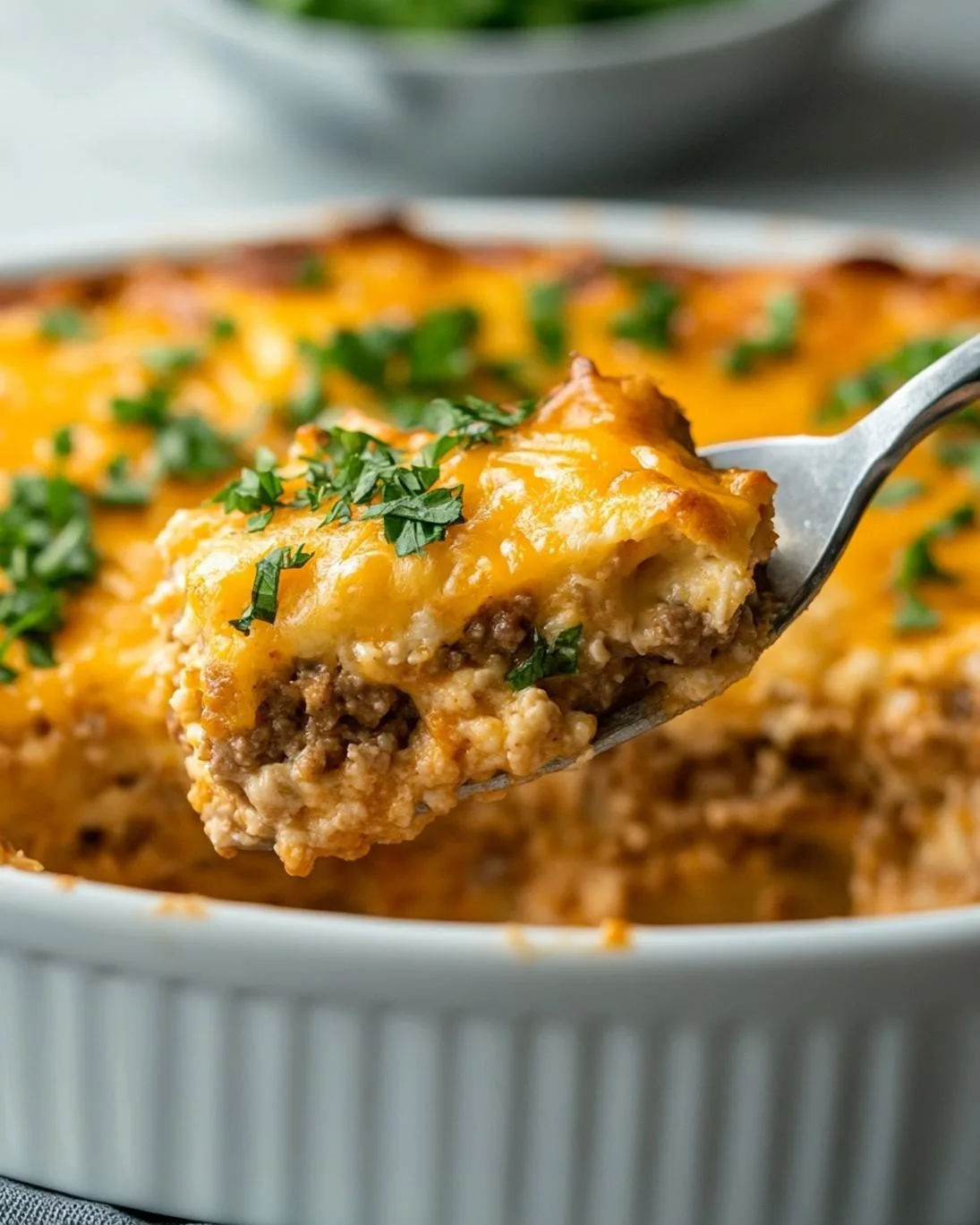 1. Rest and Garnish: Once out of the oven, let the casserole rest for 5 minutes. This allows the cheese to set slightly and makes for cleaner serving.