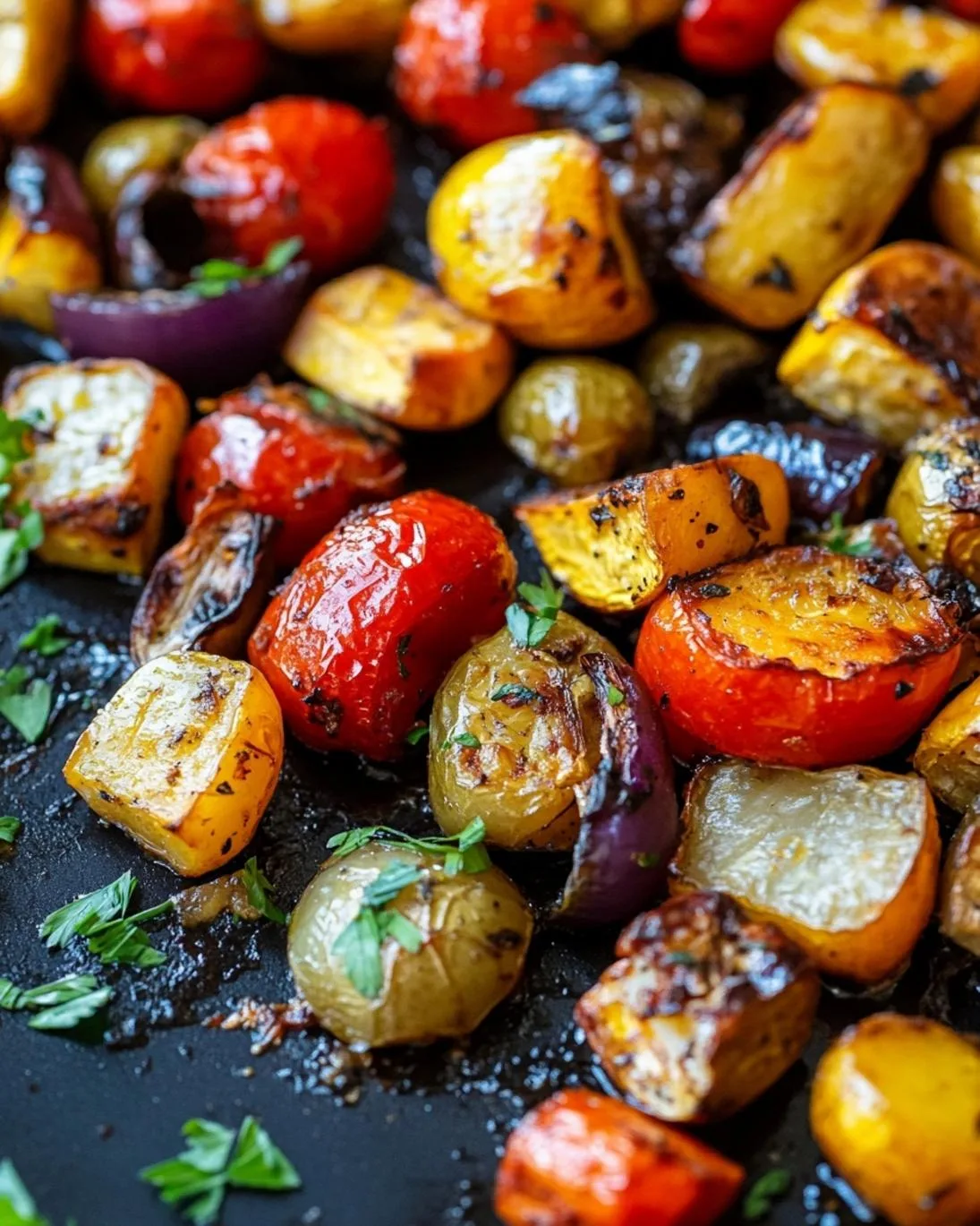 Once roasted, remove the vegetables from the oven. If desired, garnish with fresh parsley or chives. Serve immediately as a fantastic side dish. The vibrant colors and irresistible aroma will surely impress.