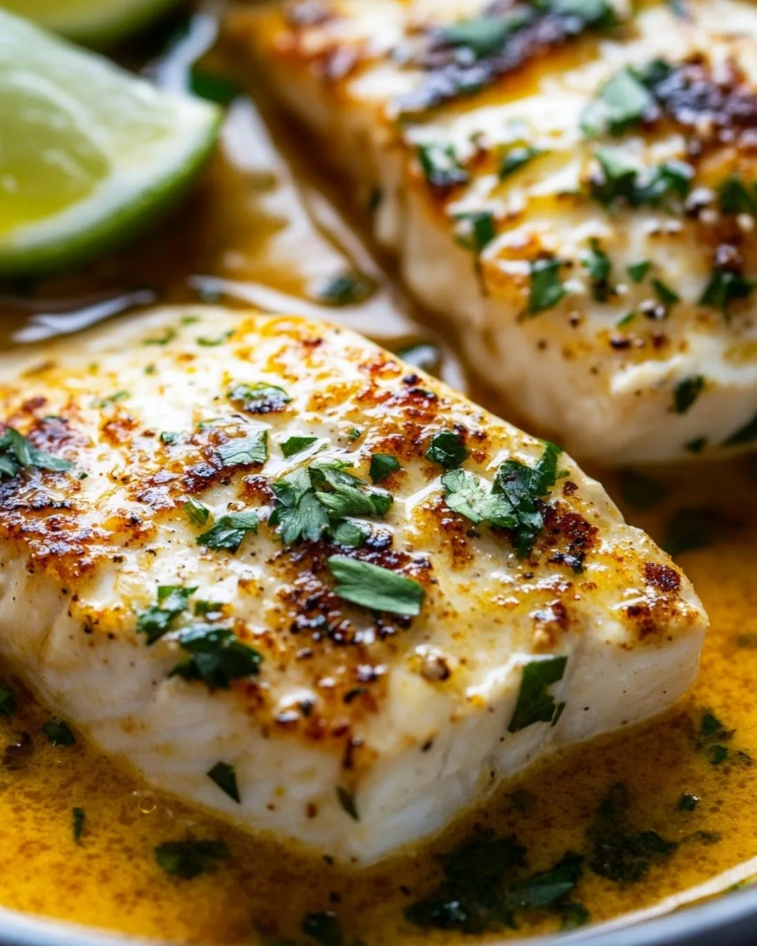 Place the cooked fish fillets back into the skillet with the coconut lime sauce. Gently spoon the sauce over the fish, ensuring each fillet is generously coated. Allow it to warm through for about 1 minute. Carefully transfer the fish and sauce to serving plates. Right before serving, drizzle the hot, sizzling garlic butter generously over each fillet. Garnish with additional fresh cilantro and lime wedges for a final flourish.