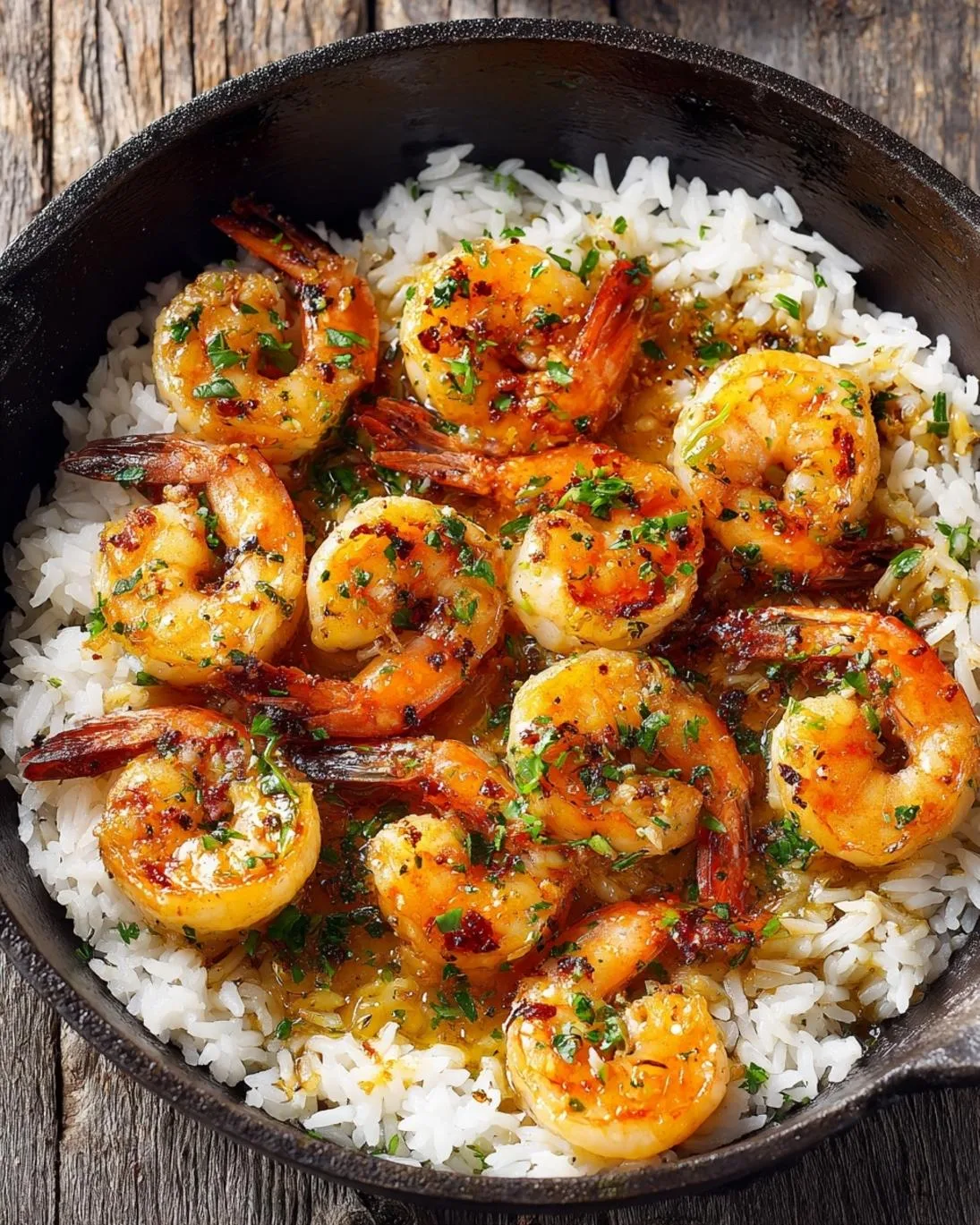 A: You can mince the garlic and chop the parsley ahead of time. You can also cook the rice in advance and reheat it when you’re ready to serve. However, the shrimp is best cooked fresh to avoid a rubbery texture.